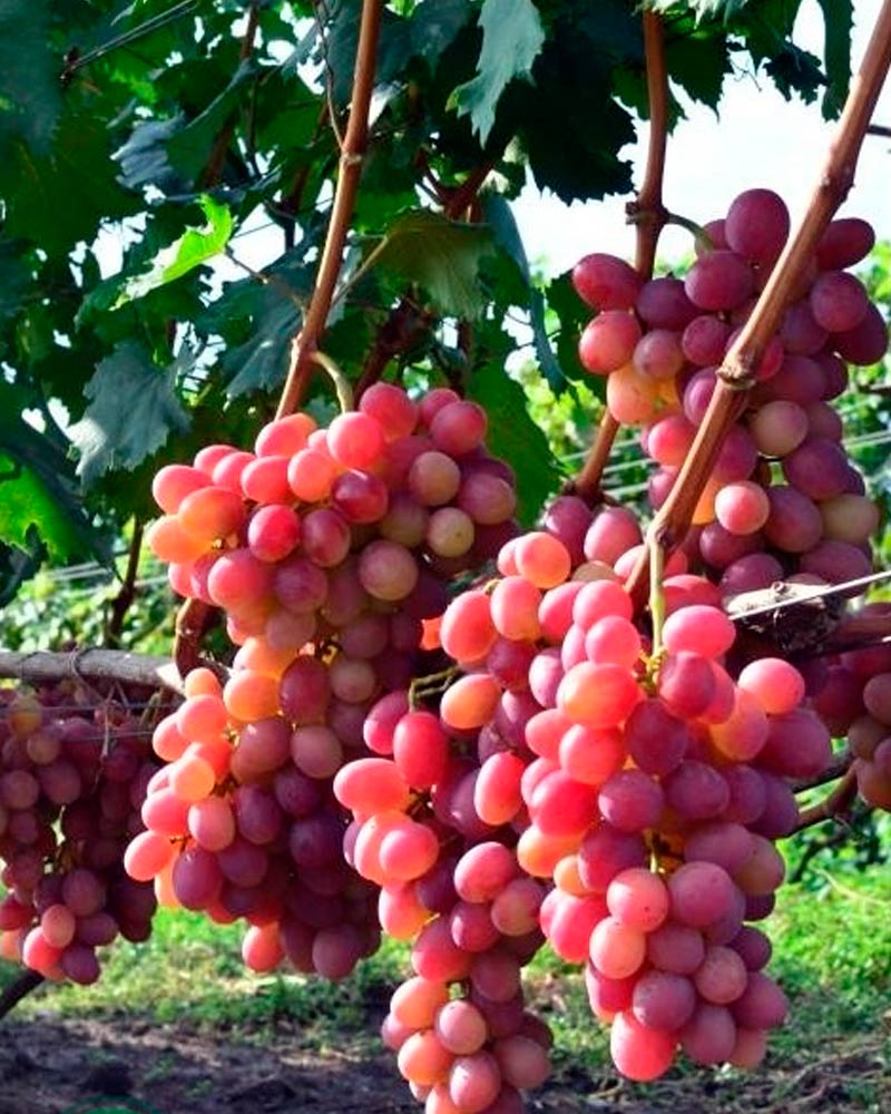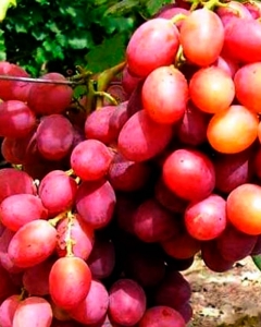 Виноград Анюта – столовый сорт средне-позднего срока созревания (130–135 дней). Отличается крупными гроздями весом 800–1500 г и овальными розовыми ягодами размером до 35 мм. Вкус – кисло-сладкий с лёгким мускатным оттенком. Морозостойкость до -23 °С, высокая устойчивость к болезням.
